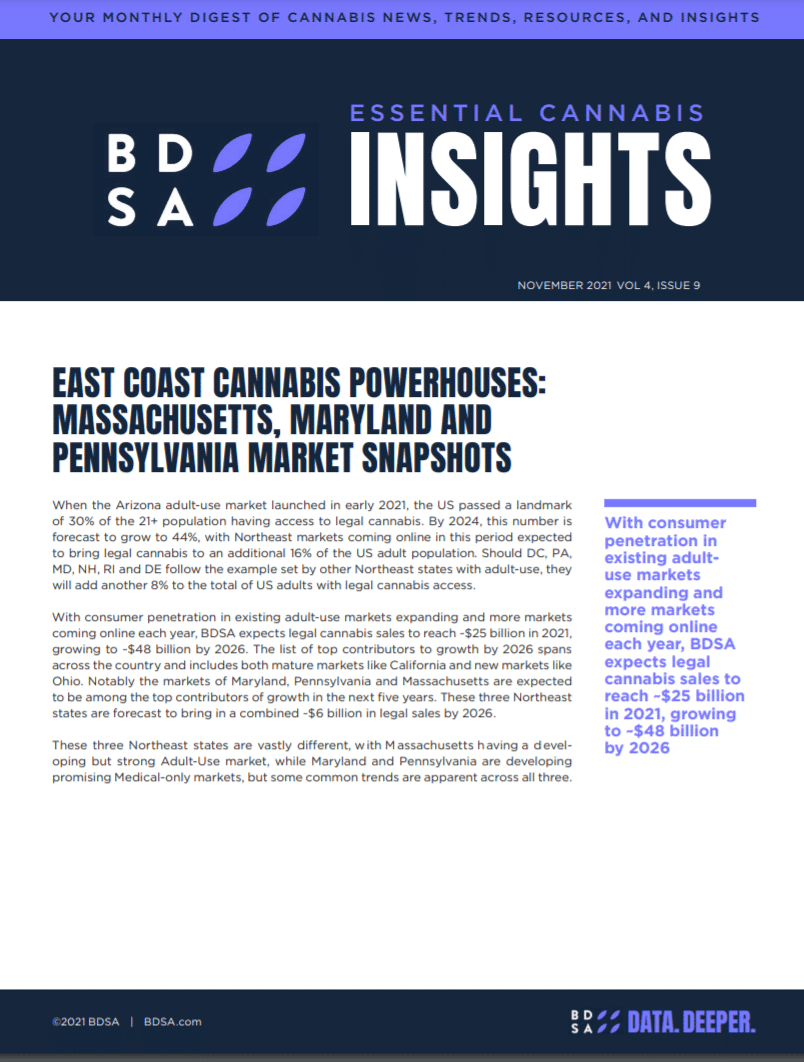 The Pennsylvania, Maryland, and Massachusetts cannabis markets are vastly different, with Massachusetts having a developing but strong adult-use cannabis market, while Maryland and Pennsylvania are developing promising medical-only cannabis markets, but some common trends are apparent across all states. Read this overview of all three cannabis markets.